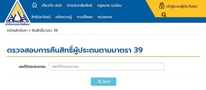 เช็คสิทธิ์ ม.39 ประกันสังคม ตรวจสอบสิทธิผู้ประกันตนมาตรา 39.